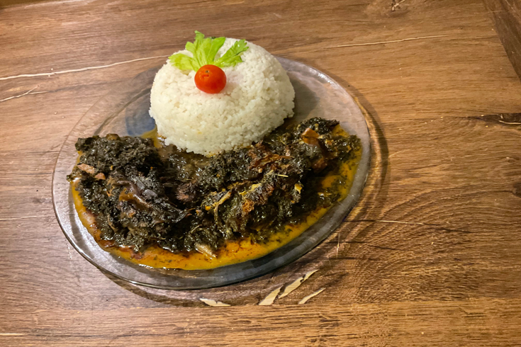 - Le Saka Saka : sauce à base de feuilles vertes (patate douce, épinards), de soumbala (épice à base de graines de néré) et d’huile de palme, servie avec du riz.